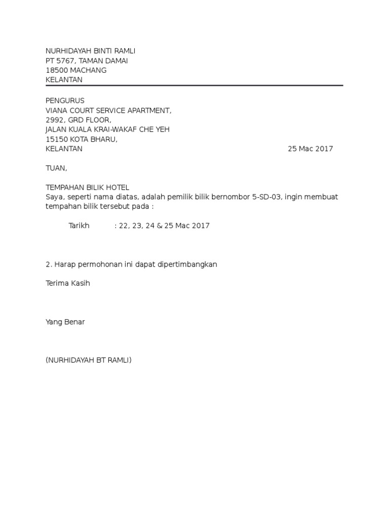 Contoh Surat Rasmi Untuk Hotel
